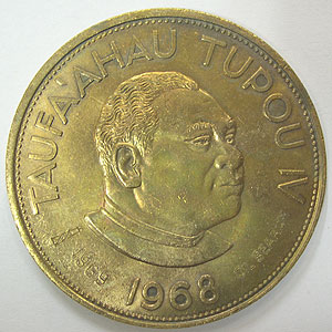 Referencia:7528 TONGA. 2 PANGAS. 1968. "TAUFA`AHAU TUPOU IV".Contramarca OIL SEARCH 1969.Dorada,manchitas. KM 38. EBC+. CUPRONIQUEL