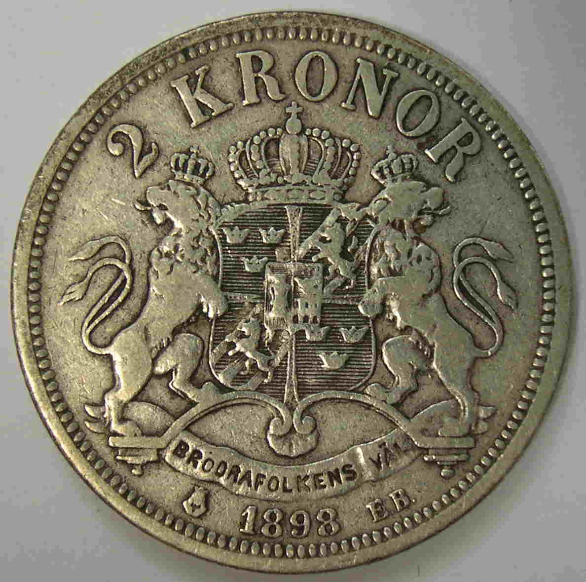 Referencia:7587 SUECIA. 2 CORONAS. 1898. EB. "OSCAR II". KM 761. MBC-. PLATA