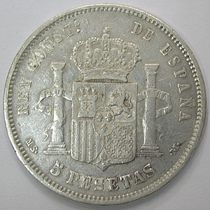 Referencia:7701 ALFONSO XII. 5 PESETAS. 1882. 1-*82. Desgaste barba. BC+. PLATA