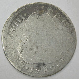 Referencia:7933 CARLOS III. 2 REALES. 1789. F.F. MEXICO. Desgastes generales. RC+. PLATA