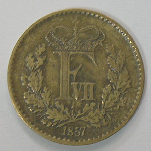 Referencia:8060 DINAMARCA. ½ SKILLING RIGSMONT. 1857. "FREDERIK VII". KM 767. EBC-. BRONCE