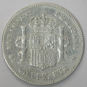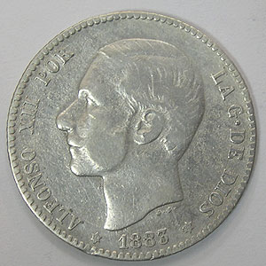 Referencia:8108 ALFONSO XII. PESETA. 1883. 18*83. Golpecitos canto y plata agria en anverso. MBC-. PLATA