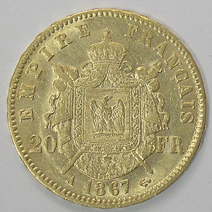Referencia:8180 FRANCIA. 20 FRANCOS. 1867. A. "NAPOLEÓN III". KM 801.1. EBC. ORO
