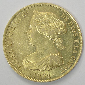 Referencia:8193 ISABEL II. 100 REALES. 1861. MADRID. Parte de brillo original. EBC a EBC+. ORO