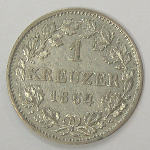 Referencia:8422 ALEMANIA-HESSE-DARMSTADT. KREUZER. 1864. "ESCUDO". KM 339. MBC+ a EBC-. PLATA