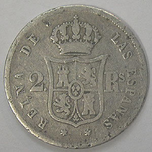 Referencia:8559 ISABEL II. 2 REALES. 1852. MADRID. Desgaste busto y golpectos canto. BC. PLATA
