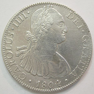 Referencia:8744 CARLOS IV. 8 REALES. 1804. T.H. MEXICO. Pequeño golpecito canto. MBC a MBC+. PLATA