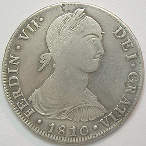 Referencia:8756 FERNANDO VII. 8 REALES. 1810. J.P. LIMA. BC+ a MBC-. PLATA