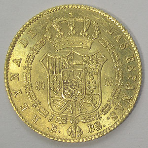 Referencia:8805 ISABEL II. 80 REALES. 1845. P.S. BARCELONA. EBC- a EBC. ORO