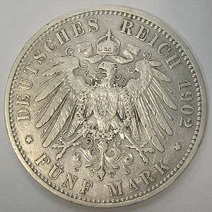 Referencia:8832 ALEMANIA-PRUSIA. 5 MARCOS. 1902. A. "GUILLERMO II". KM 523. MBC a MBC+. PLATA