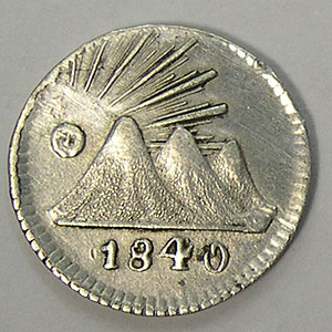 Referencia:8896 GUATEMALA. ¼ REAL. 1840. REP. AMERICA CENTRAL.Borrado facial en reverso,1.2 cm diametro. KM 1. MBC+ a EBC-. PLATA