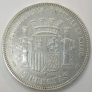 Referencia:9053 GOBIERNO PROVISIONAL. 5 PESETAS. 1870. 18*70. Insignificantes golpecitos canto,ligeras rayitas campo. MBC+ a EBC-. PLATA