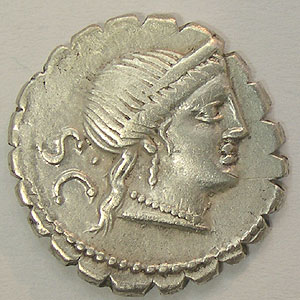 Referencia:9090 REPUBLICA ROMANA. NAEVIA. DENARIO. Anv: S.C. Cabeza diademada de Venus. Rev:NAE. BALB. Victoria en triga al galope, encima CLIII. MBC a MBC+. PLATA
