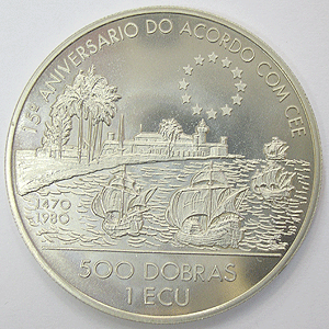 Referencia:9620 SANTO TOME. 500 DOBRAS. 1993. 1 ECU "15º ANIVERSARIO DE ACUERDO CON C.E.E". KM 67. SC. CUPRONIQUEL
