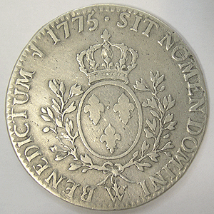 Referencia:9681 FRANCIA. ECU. 1775. W. "LUIS XVI".Desgastes y rayitas busto . KM 78.14. BC+. PLATA