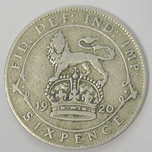 Referencia:9729 INGLATERRA. 6 PENIQUES. 1920. "JORGE V". KM 815. BC+ a MBC-. PLATA
